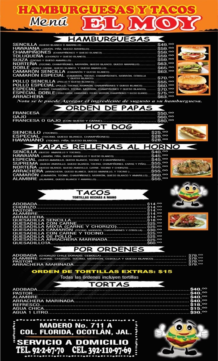 Welcome to Hamburguesas y Tacos 'El Moy', an enticing fast food gem located in Ocotlán, Jalisco. Specializing in juicy hamburgers and mouthwatering tacos, this eatery is a must-visit for food lovers in the area. Patrons rave about the flavorful offerings, such as the signature hamburguesa norteña, which stands out as a true favorite according to regulars. Customers consistently applaud the attentive service and commendable prices, making it accessible for those on a budget.